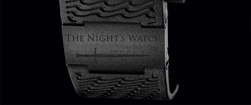附在手表上的是一條帶有兩個陶瓷鏈節(jié)的橡膠表帶。這就是守夜人元素的用武之地。其中一個鏈節(jié)上,雅典表用劍雕刻了“守夜人”標志,而另一個鏈節(jié)上則刻有“我是黑暗中的劍”的守夜人座右銘被刻上。目前尚不清楚手表背面是否有任何權(quán)力的游戲品牌。瑞士自動機芯的功能包括時間、小秒針、日期和動力儲存指示器。