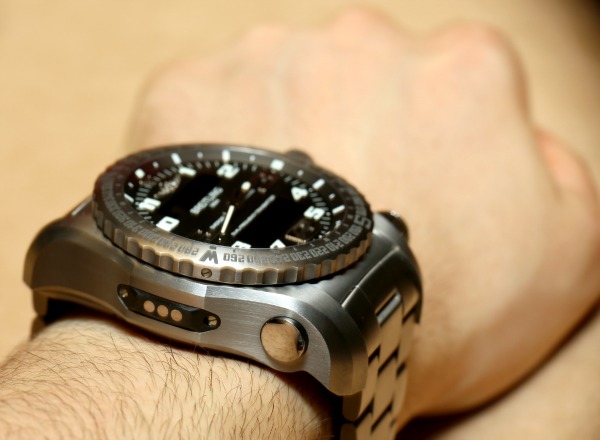 Emergency II 手表的新技術非常棒,我很高興聽到百年靈能夠提供與原版相同、無需動腦筋的操作。作為一款手表,Emergency II 就像原版 Emergency 的老大哥,毫不夸張地說。Emergency II 是一款相當大的時計,即使按照大型手表標準也是如此。它是可穿戴的,但寬度為 51 毫米,可能是您收藏中最大(也很厚)的手表。Emergency II 完全由鈦制成,但并不那么重——所以至少重量不是問題。